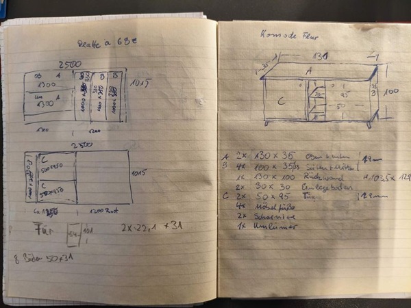 Der Plan wie es aussehen soll war relative schnell skizziert, die Maßen waren ja soweit durch die Ecke in die es passen sollte gegeben.