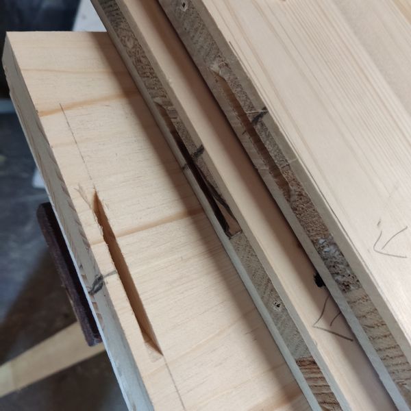 Nach dem Zuschnitt ging es an das Anbringen der Schraubenlöscher und der Nuten für die Lamellos.