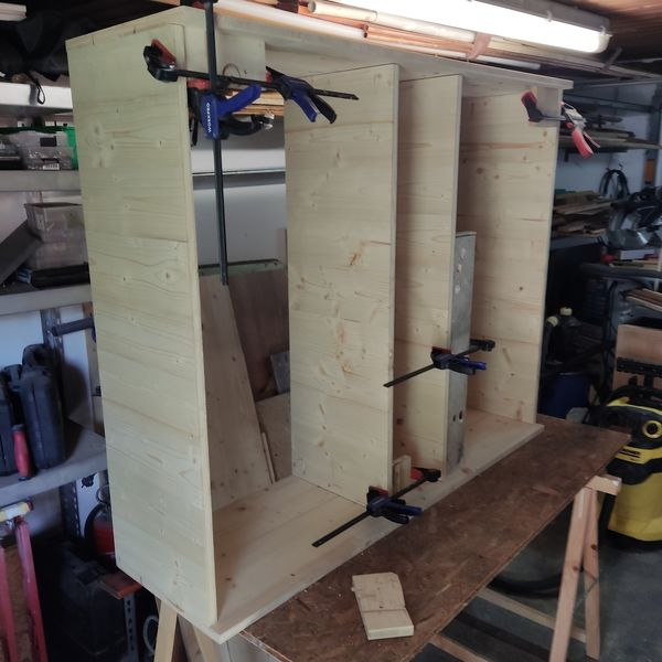 Die schrägen Bohrlöscher für die Verschraubung habe ich mit dem VEVOR Pocket Hole Jig Kit erstellt. Das Kit ist nicht das beste auf dem Markt, die Bohrhülsen zeigen nach häufiger Nutzung starke Verschleißspuren